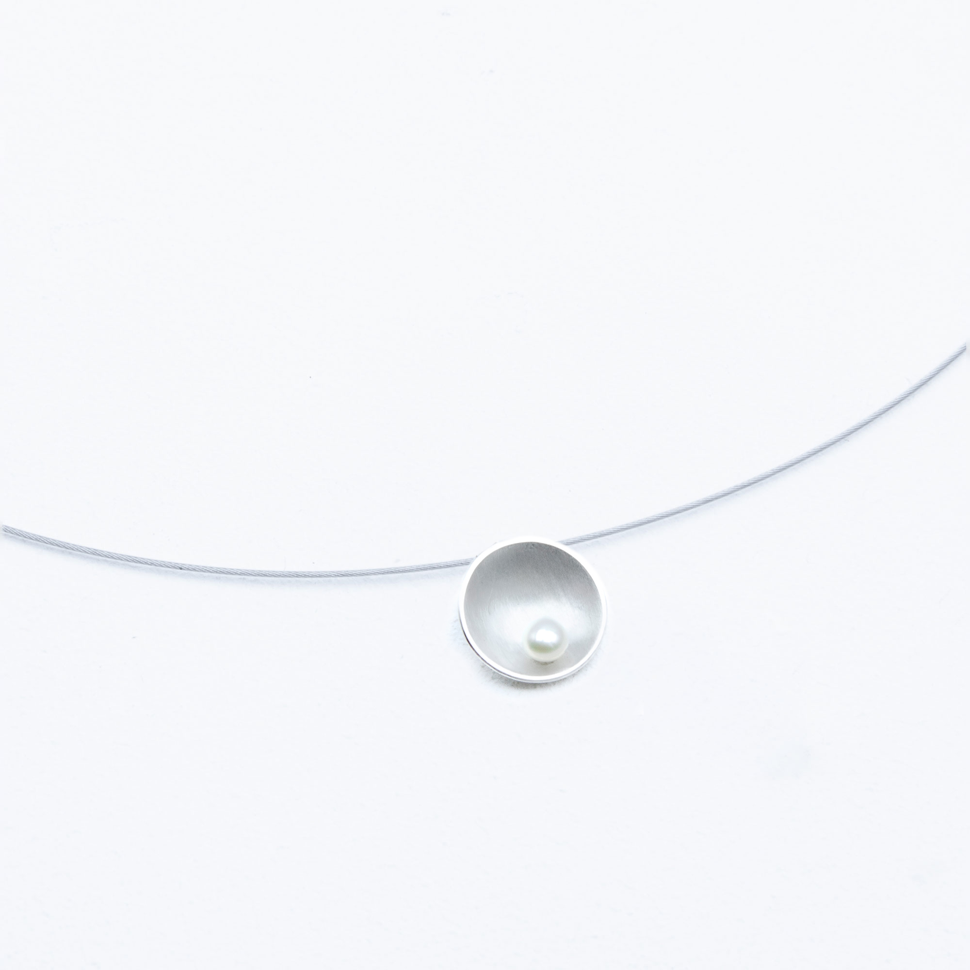Ein runder, sanft gewölbter Anhänger aus massivem 925er Silber (Ø 10 mm), seidenmatt gebürstet und mit hochglanzpolierten Kanten. Dieser Kontrast verleiht dem Schmuckset Tiefe und sorgt für eine ausgewogene Balance aus Struktur und Glanz.
