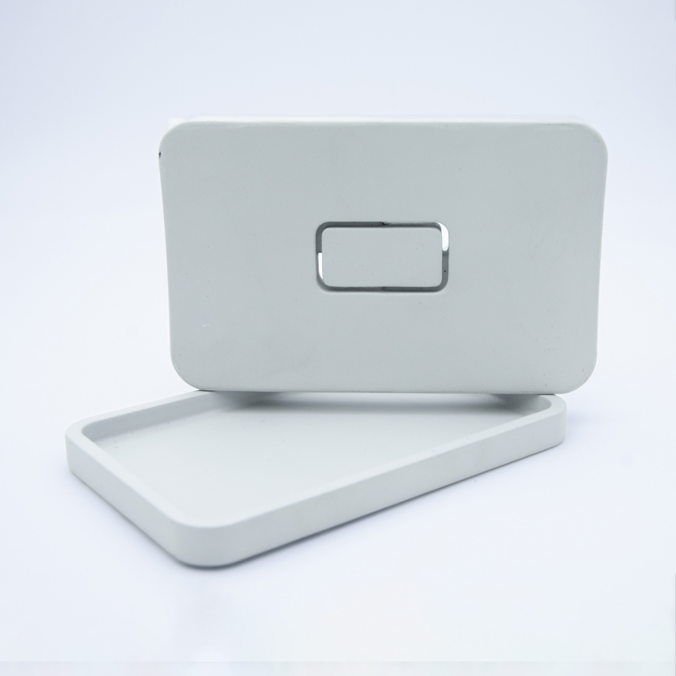 Unsere Seifenschale Klara im Set mit Tropfschale in Weiß, Grau oder Schwarz ist ein optisches Highlight in Deinem Badezimmer oder in Deiner Küche. Ob als ästhetisches Seifenablage oder als Ablage für Deinen Spülschwamm in der Küche mit unserer Seifenschale Klara hast Du Deine Seife oder Deinen Spülschwamm immer griffbereit. Dabei fügt sie sich als zeitlos schlichtes Betonaccessoire in jedes Badezimmer und jede Küche ein, macht aber auch allein eine tolle Figur. In liebevoller Handarbeit fertigen wir unsere Seifenschalen Klara in unserer kleinen Manufaktur nach eigenem Design. Als Material verwenden wir ausschließlich hochfesten Hochleistungsbeton in den Farben Weiß, Grau und Schwarz. Natürlich lassen sich all unsere Betonaccessoires auch in anderen Farbtönen realisieren, sprich uns hierzu gerne an.