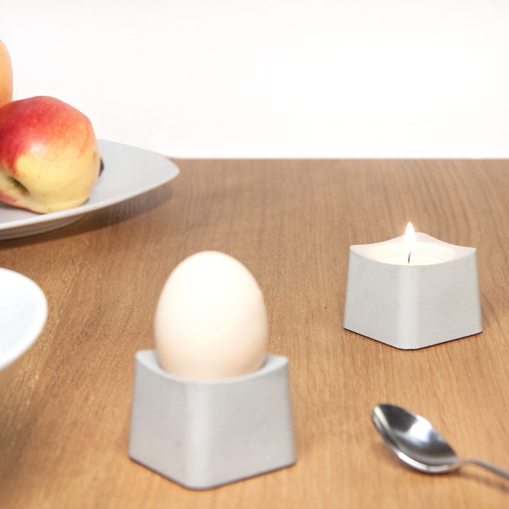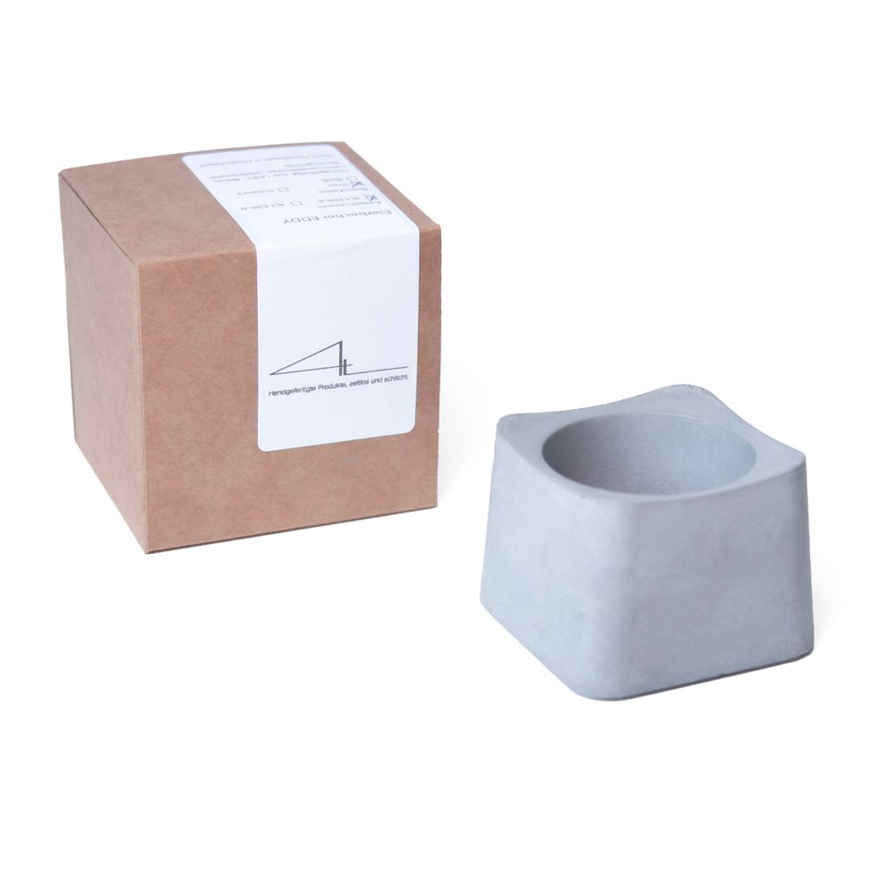 Mit unserem Teelicht Eddy E in Weiß, Grau oder Schwarz erhältst du ein echtes Multifunktionstalent. Ob als stimmungsvoller Teelichthalter am Abend als Eierbecher am Frühstückstisch oder als kleines Pflanzgefäß für deine Sukkulente. In liebevoller Handarbeit fertigen wir jedes Produkt in unserer kleinen Manufaktur nach eigenem Design. Als Material verwenden wir ausschließlich hochfesten Hochleistungsbeton in den Farben Schwarz und Grau. Natürlich lassen sich all unsere Betonaccessoires auch in anderen Farbtönen realisieren, sprich uns hierzu gerne an. Teelicht Eddy E